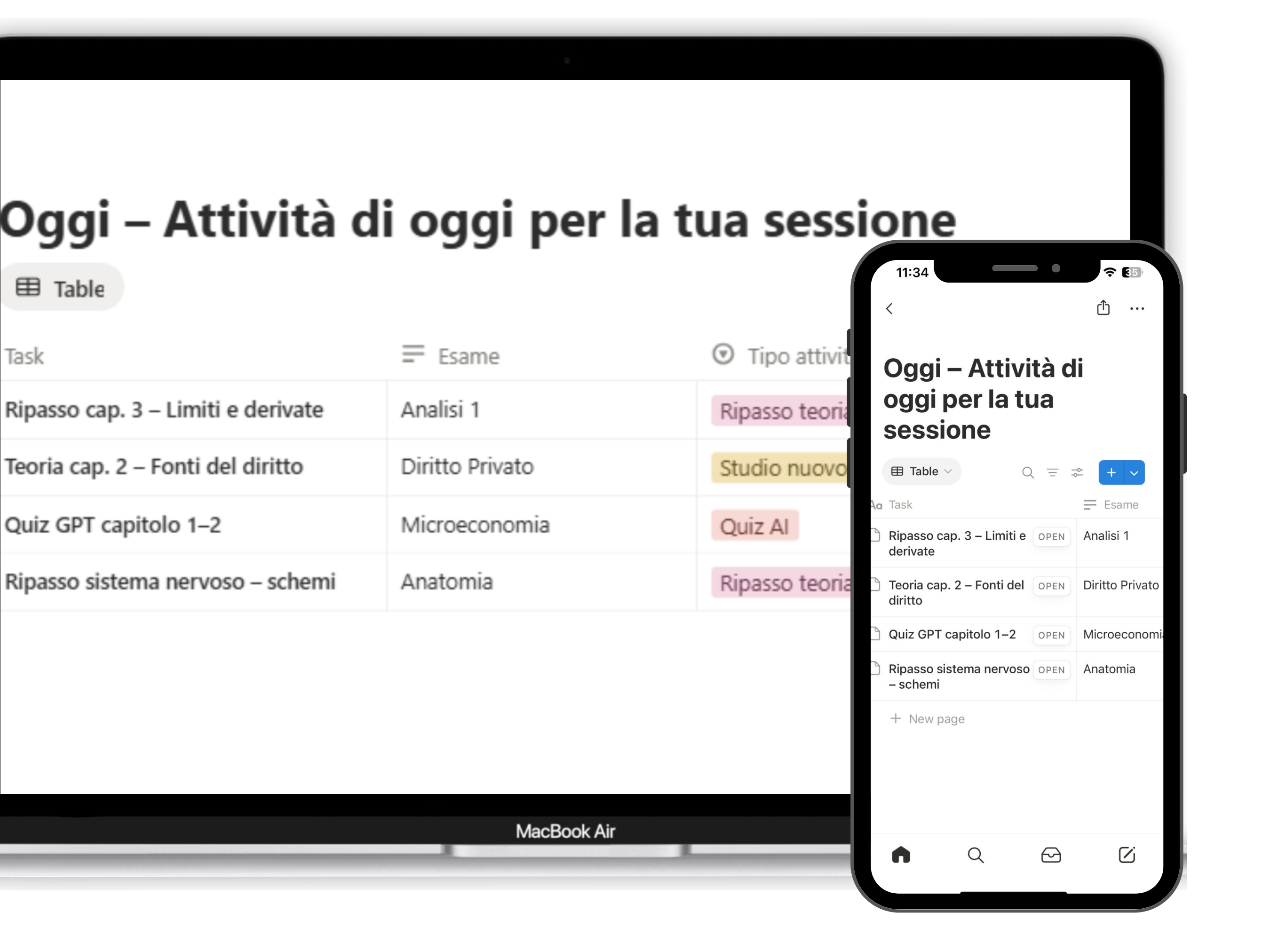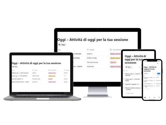 Usabile da PC, tablet e telefono (Notion sincronizzato)